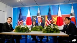 ประธานาธิบดีโจ ไบเดน ร่วมหารือกับผู้นำญี่ปุ่นและเกาหลีใต้ ระหว่างการประชุมนอกรอบนอกรอบของการประชุมสุดยอดองค์การสนธิสัญญาแอตแลนติกเหนือ หรือ นาโต้ ที่กรุงมาดริด ประเทศสเปน ในวันพุธ
