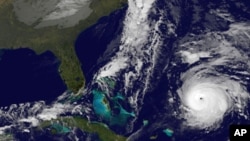 คุณ Alexander MacDonald ผู้อำนวยการสำนักงาน NOAA ชี้ว่าภาพถ่ายดาวเทียมของพายุลูกใหญ่ที่พัดเข้าจีนในเดือนตุลาคมปีพุทธศักราช 2553 อยู่บนจอด้านซ้ายมือ ส่วนบนจอด้านขวามือเป็นภาพพายุที่มีลักษณะคล้ายกันซึ่งระบบอมพิวเตอร์ออกแบบขึ้นมา